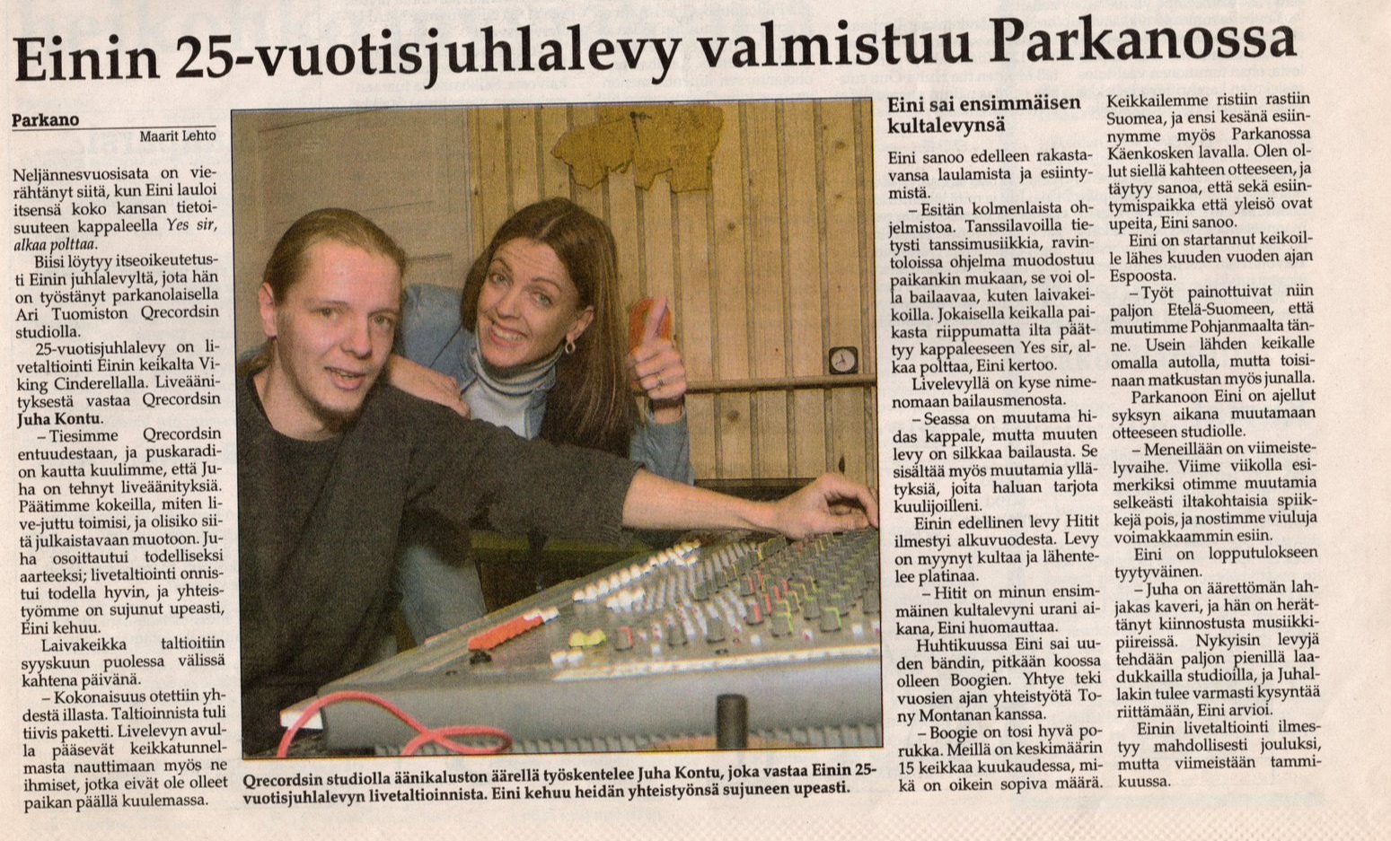Kristian on myös ollut yhteistyössä EININ kanssa, jolloin hän miksasi ja tuotti Einin Live levyn. Tämän sivun lopussa yhteishaastattelu, jonka antoivat lehdelle. Lisäksi Kristian teki uuden version Huone 105 kappaleesta jonka Eini levytti ja teki hänelle myös oman kappaleen " Ajatusleikki". Einin kappaleen "Kesä ja yö" vuonna 2005 levytetyssä versiossa sovitus Juha Kontu.