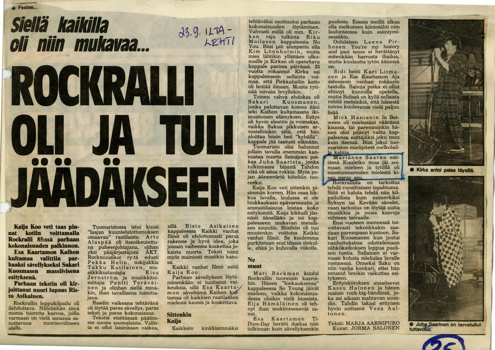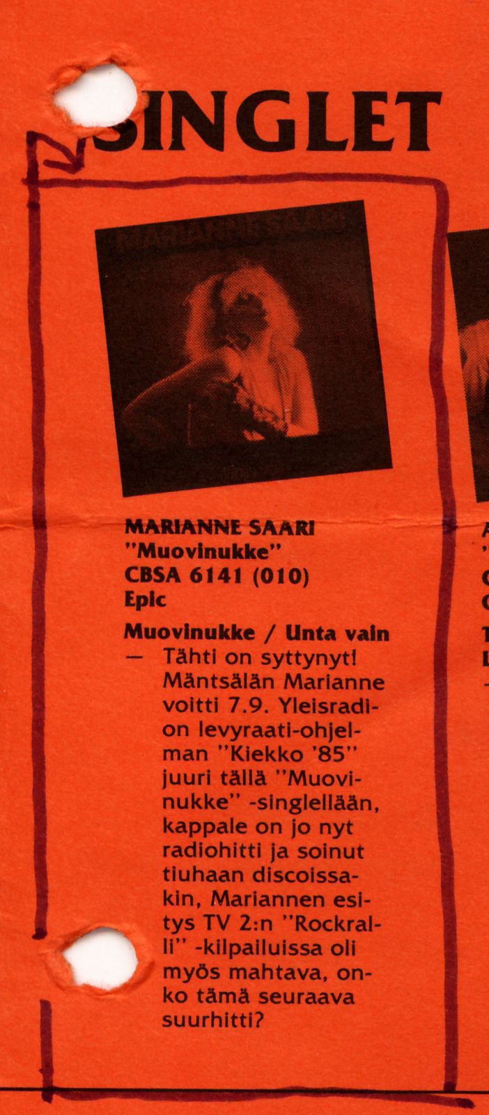 "Muovinukke" singlen esittely ja lehtijuttuja