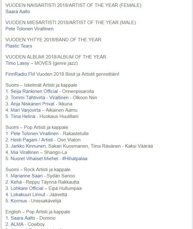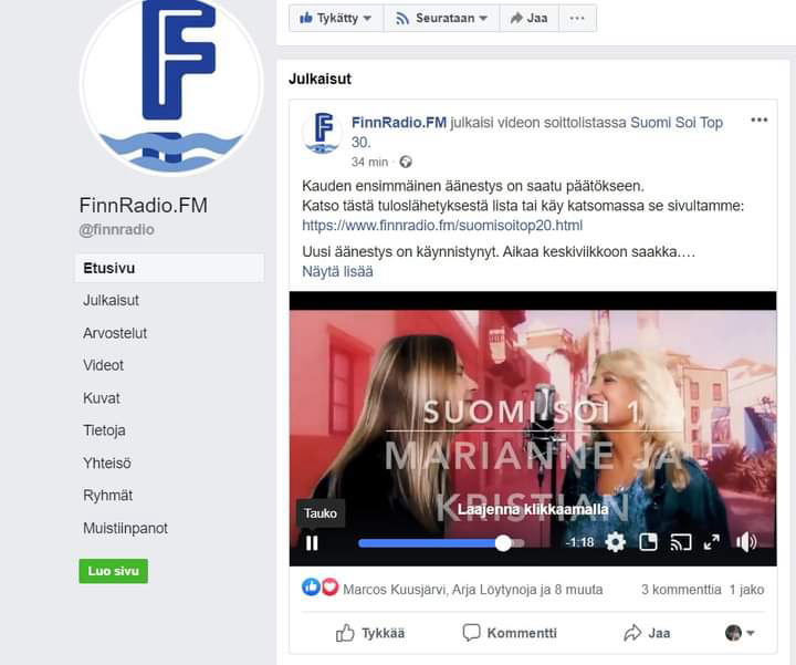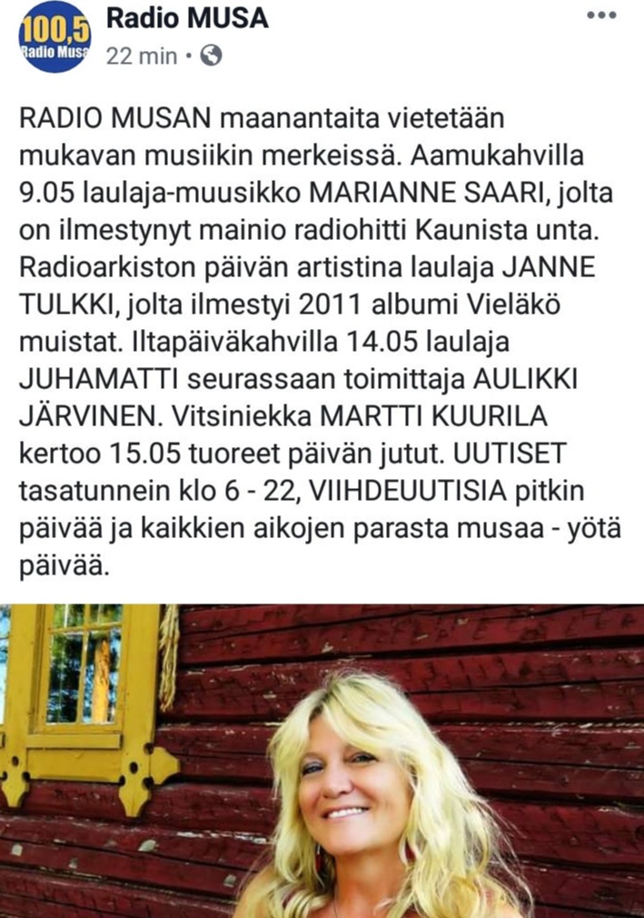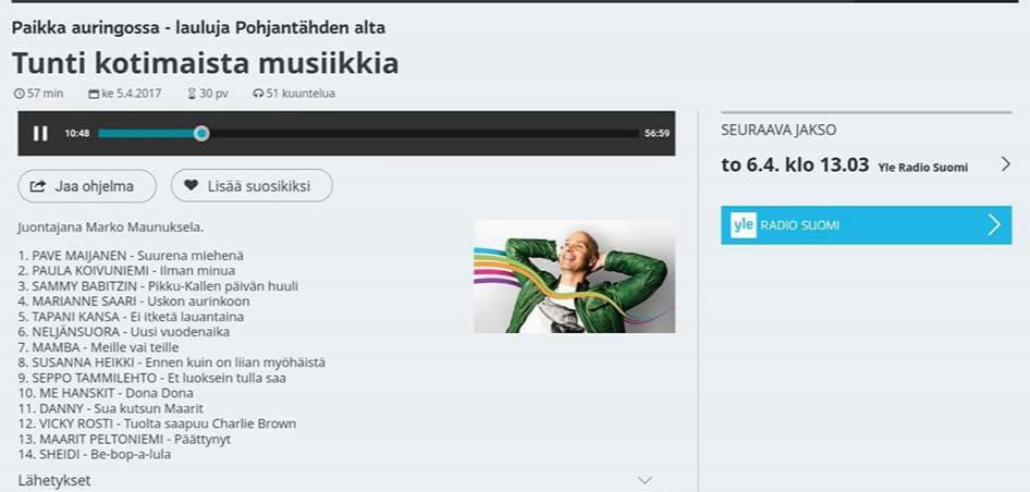 mm. Radio Musassa, Järviradiossa ja Radio Pookissa. Radio Musan kautta se on saanut hyvää