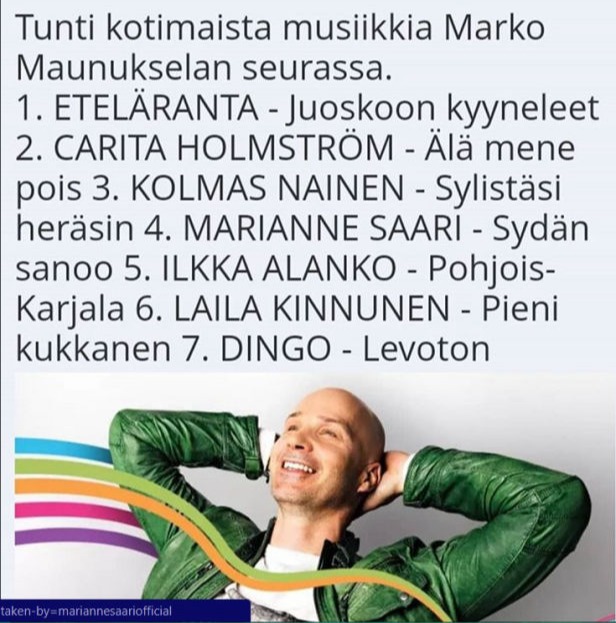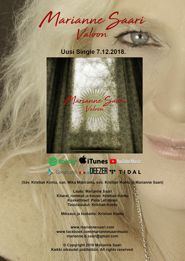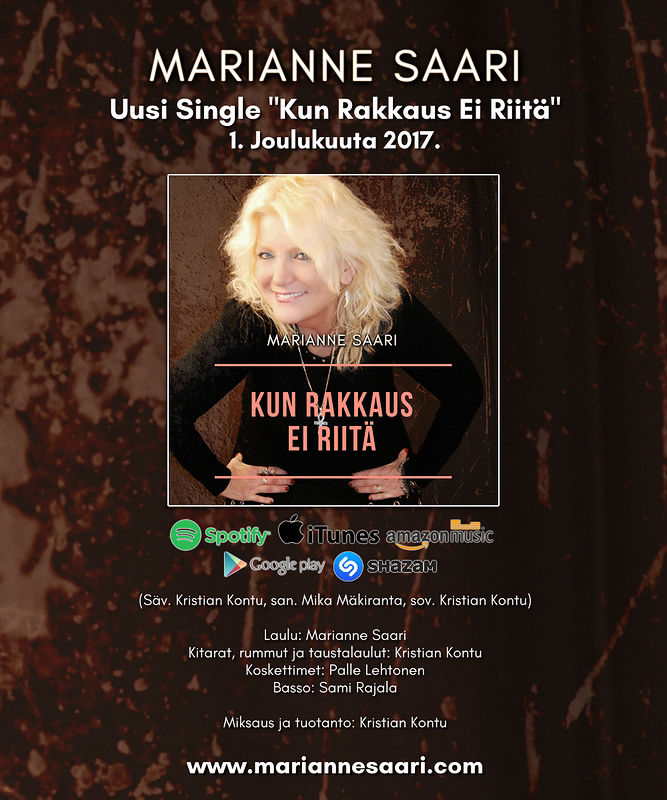 kitarat, rummut ja basson. Koskettimia soittaa Palle Lehtonen. Marianne Saarelle kappale on kuudes julkaistu