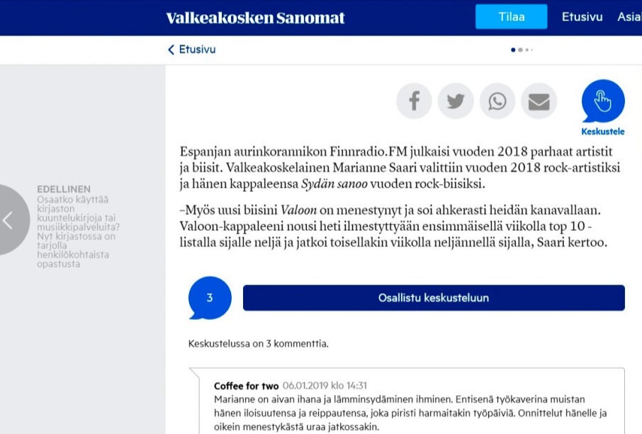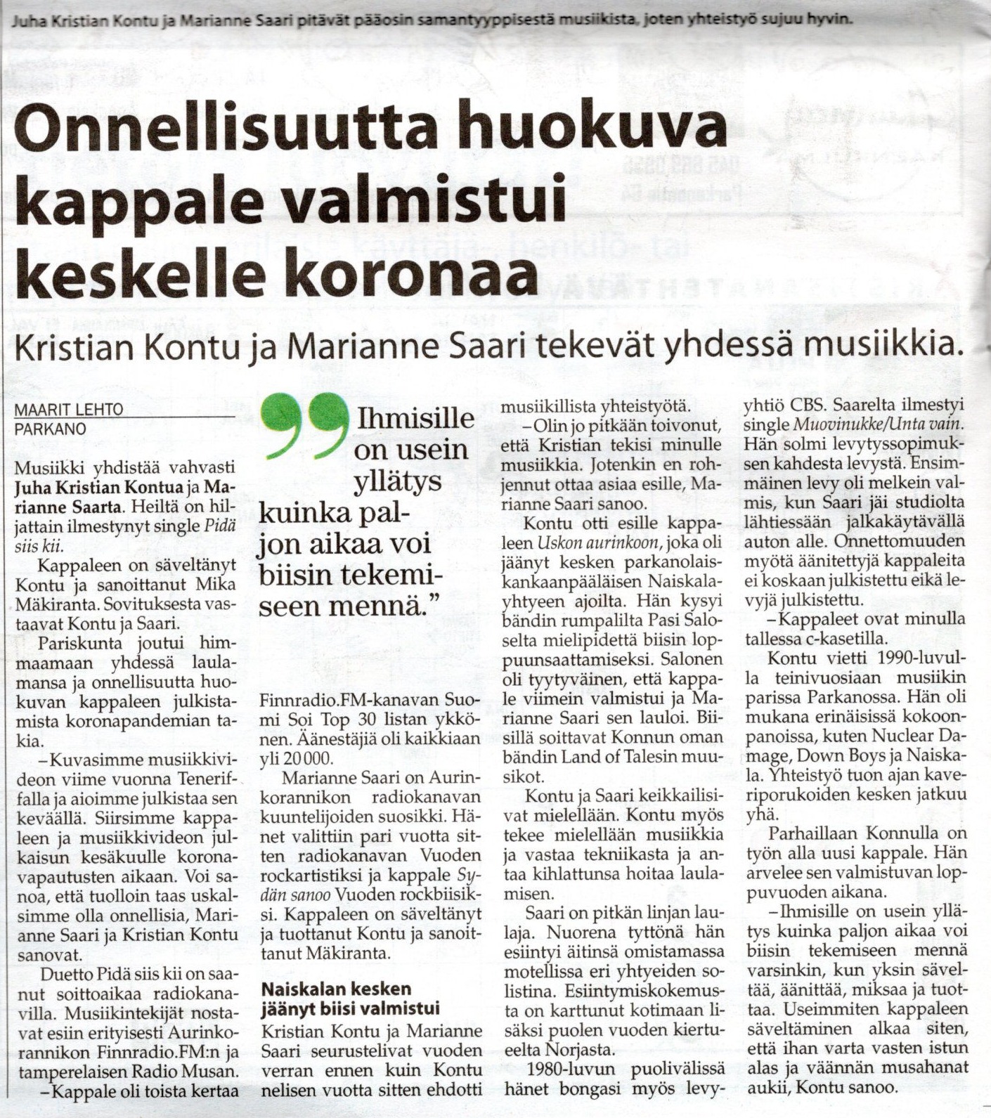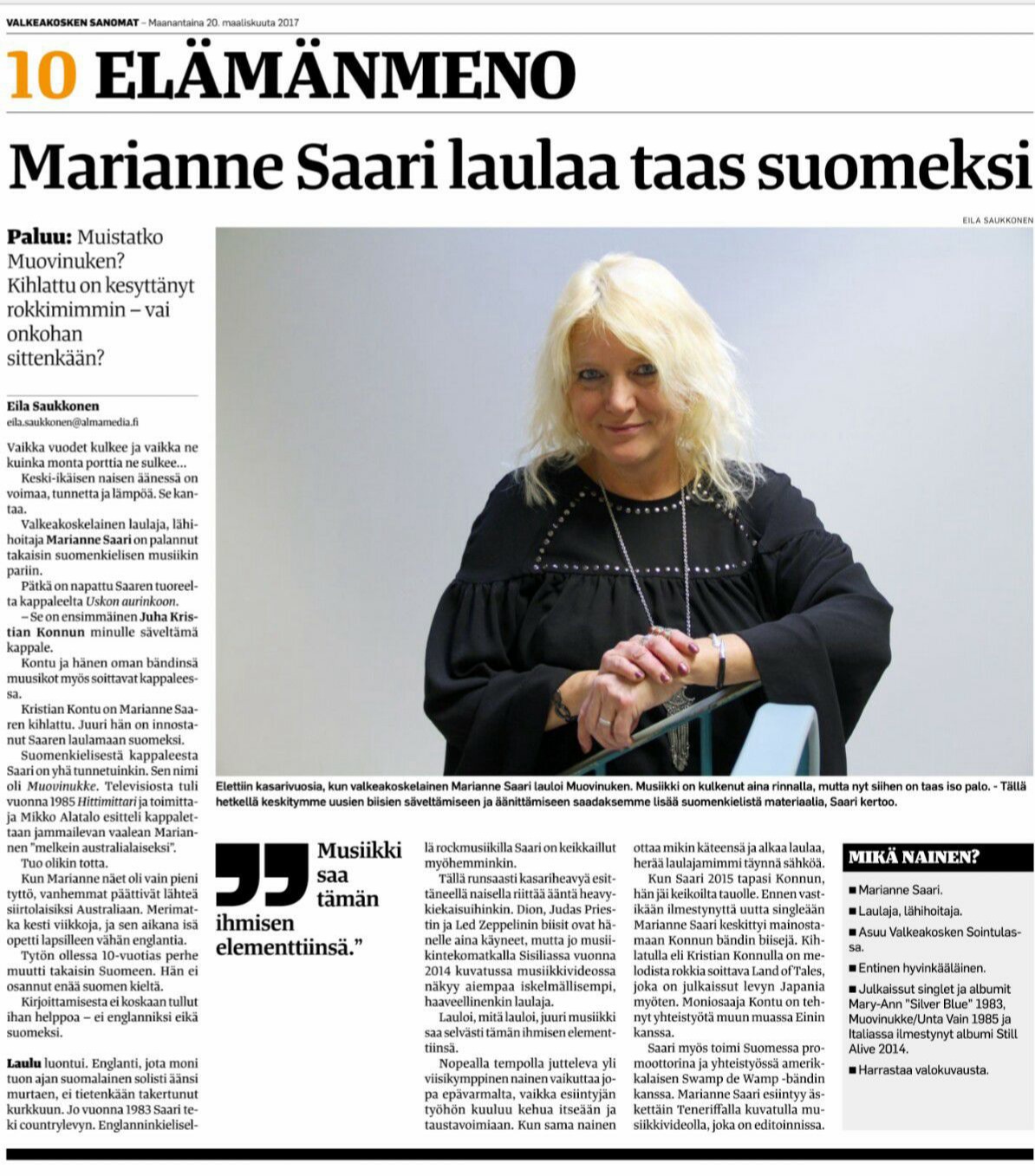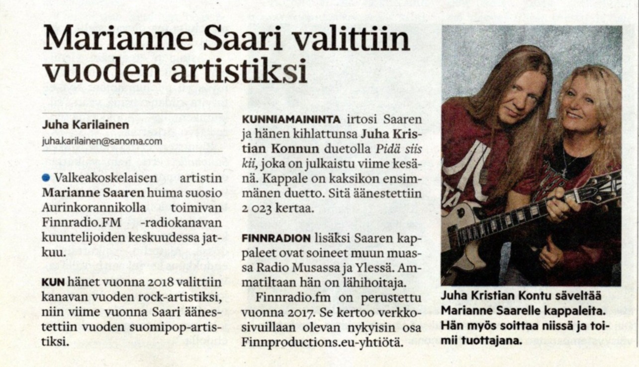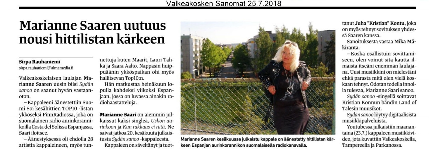 Porista kotoisin olevan ja nykyään Valkeakoskella asuvan Marianne Saaren alkuvuodesta julkaistu single ”Uskon