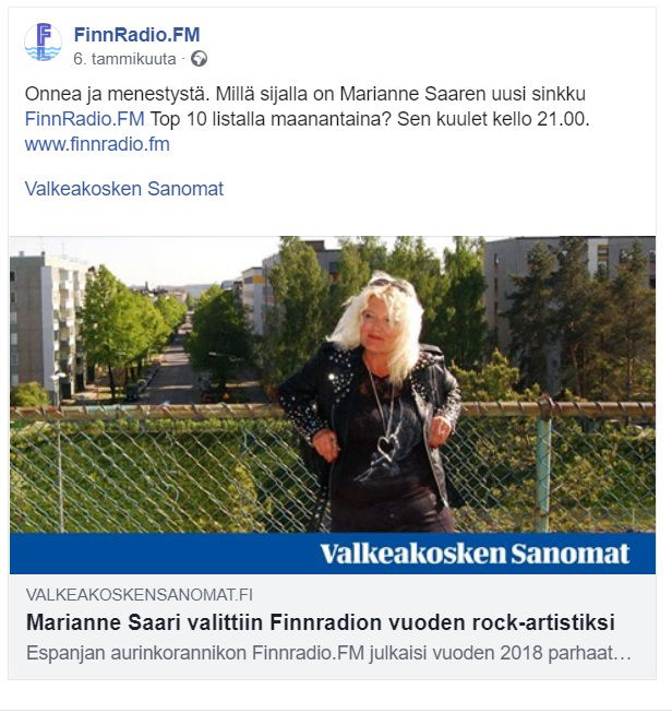joulukuuta! Marianne Saari valittiin juuri Finnradio.fm -kanavalla vuoden rockartistiksi